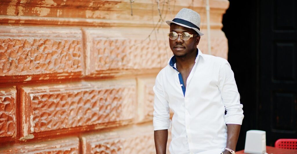 A crisp tailored shirt paired with bold Ankara trousers, creating a balanced look that blends modern class with authentic African expression.
